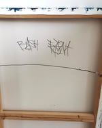 En résulte des œuvres quasi abstraites où les coulures s'entremêlent avec les lignes de signatures.