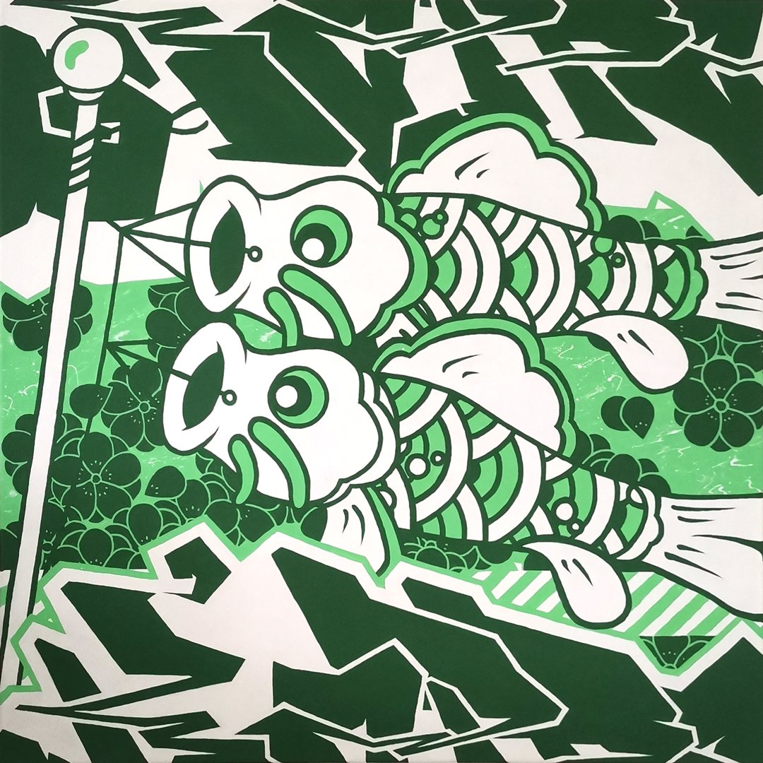 Cette œuvre fait partie de la série Kappa comprenant peintures sur toile, sérigraphies, affiches et illustrations numériques réalisés entre 2024 et 2026. Un mélange d'inspirations issues du folklore japonais, du graffiti et du design graphique.